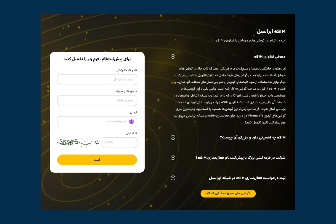 - وارد صفحهی پیشثبتنام eSIM ایرانسل شوید.