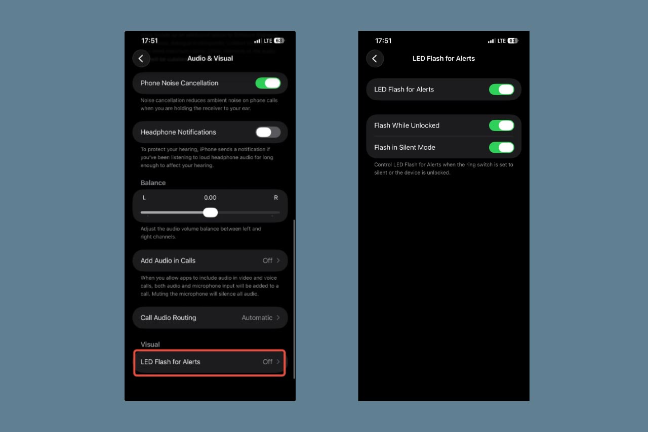 - گزینهیLED Flash for Alerts را فعال کنید.