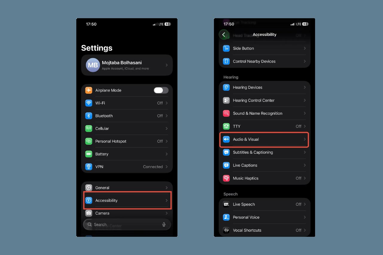 - در قسمت Audio/Visual، گزینهی LED Flash for Alerts را پیدا کنید.