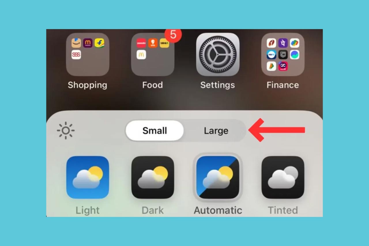 - درصورتی که از iOS 18 استفاده میکنید، گزینهی Large را انتخاب کنید.