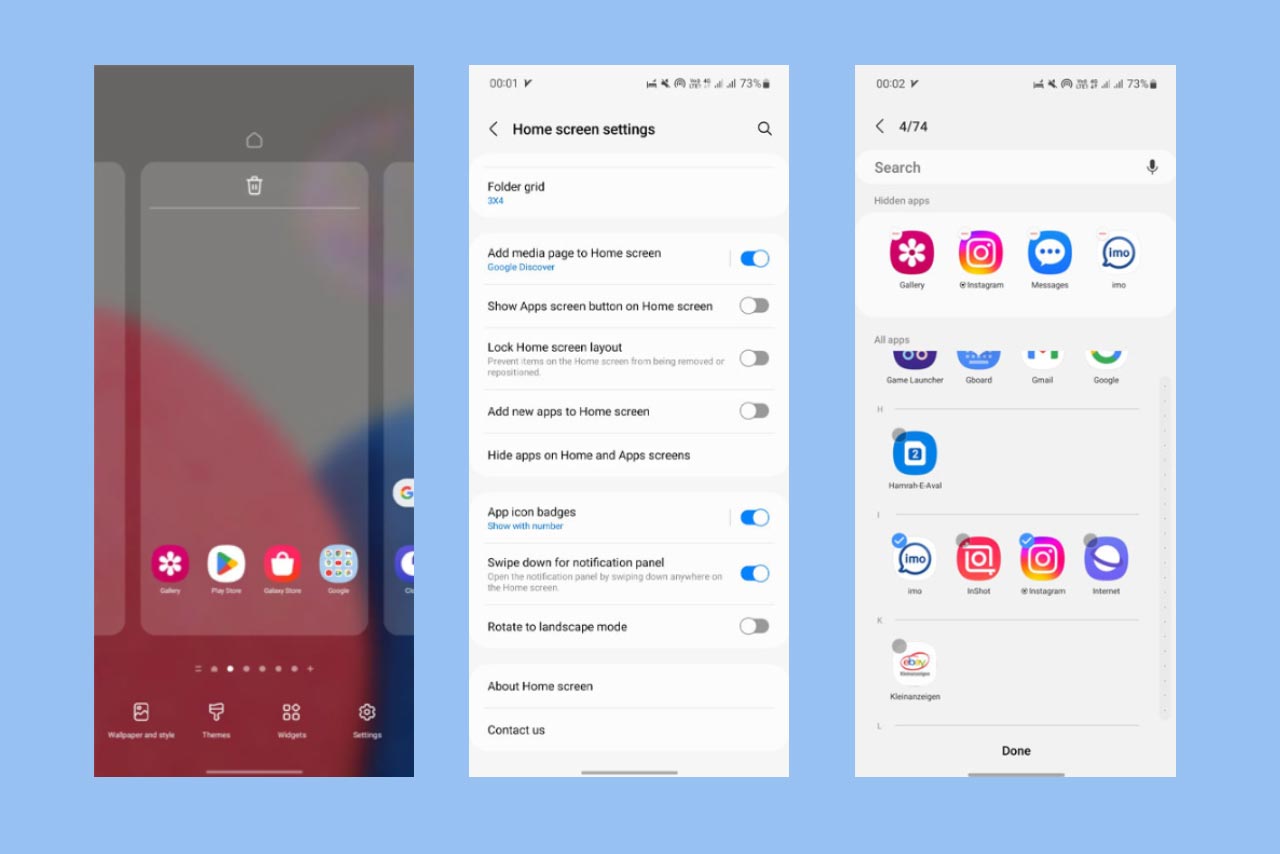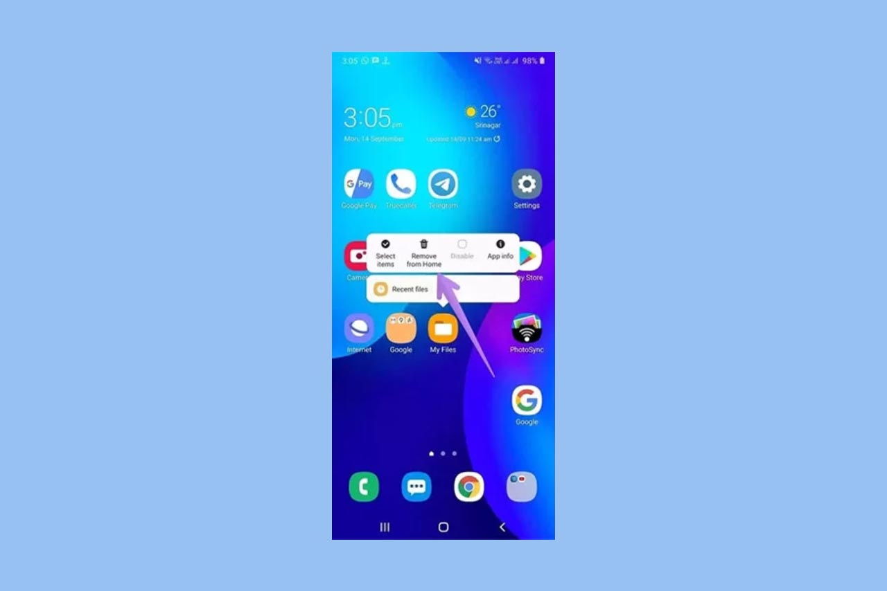 در روش هاید کردن برنامه در گوشی سامسونگ، برنامهها فقط از صفحه اصلی گوشی موبایل حذف میشوند و مستقیماً قابل مشاهده نخواهند بود. به انجام مراحل زیر میتوایند برنامهها را در سامسونگ مخفی کنید: