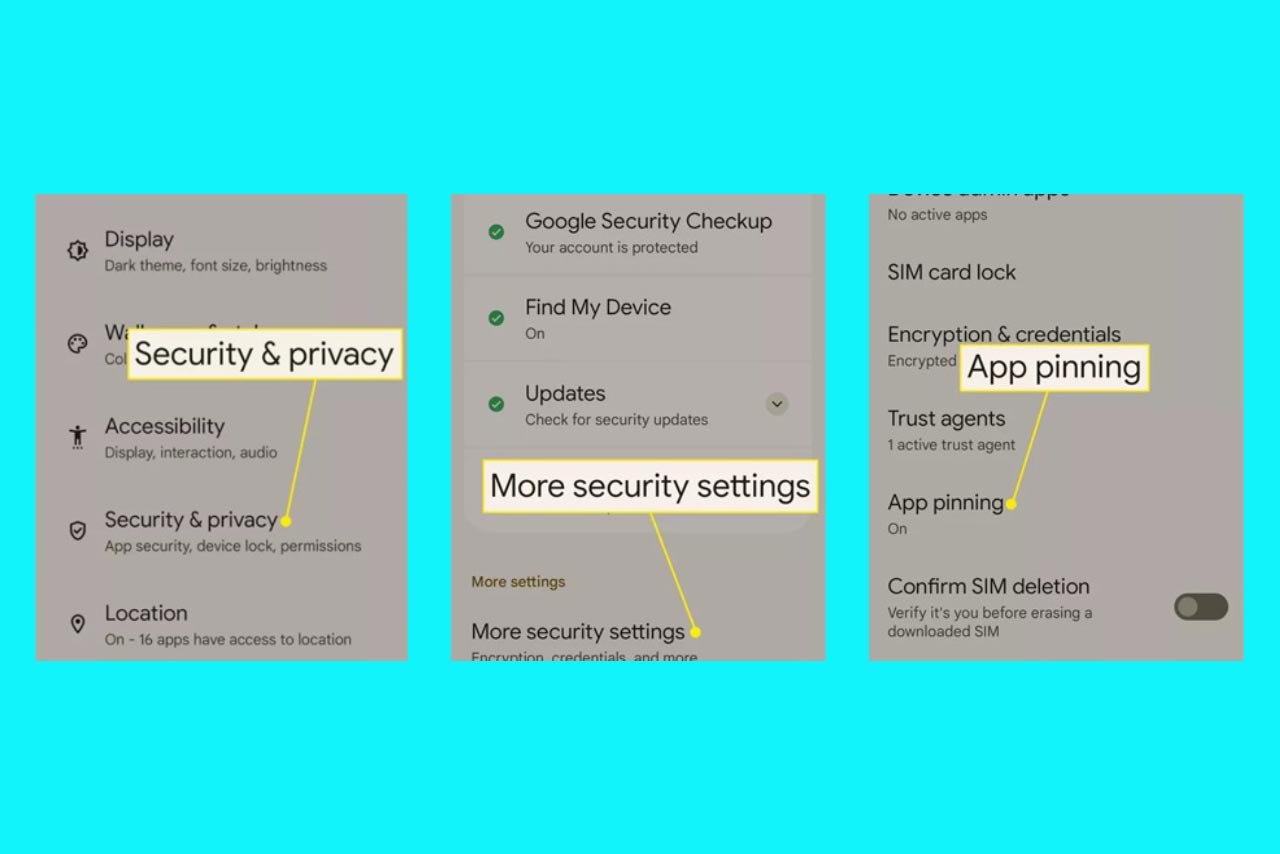 - App pinning را انتخاب و Use app pinning را فعال کنید.