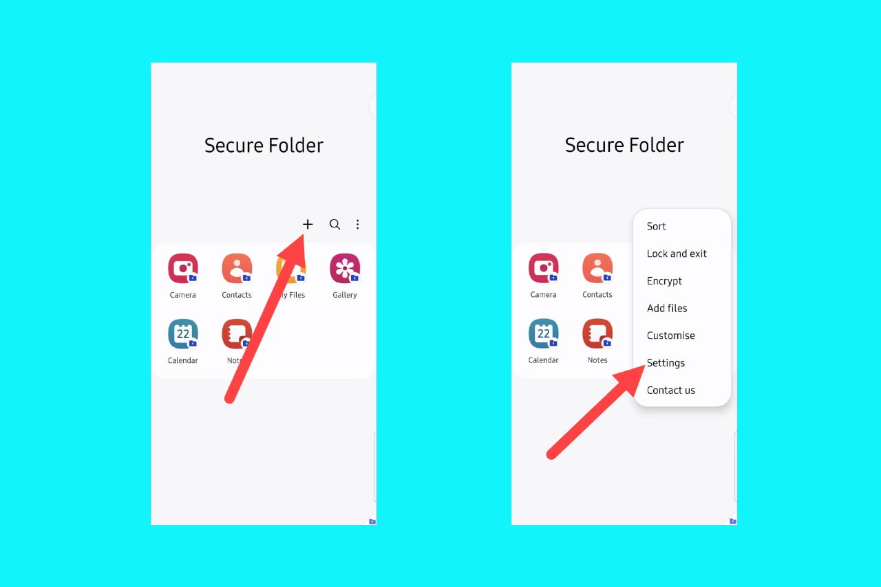 - با لمس سهنقطه میتوانید وارد تنظیمات Secure Folder شوید؛ و نحوهی ورود به برنامه را با توجه به نیازتان تغییر دهید یا حتی برنامه را حذف کنید.