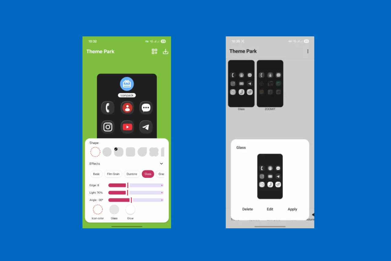 - Theme Park شروع به جایگزینی آیکونهای پیشفرض با طرحهای شیشهای آماده OneGlass میکند.