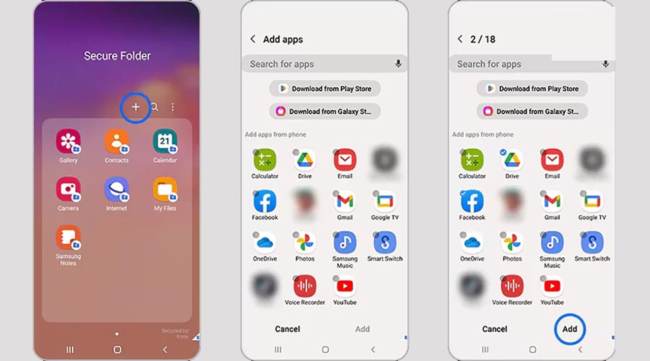 -در داخل پوشه امن، گزینهای برای افزودن برنامه (Add Apps) وجود دارد، روی آن ضربه بزنید.