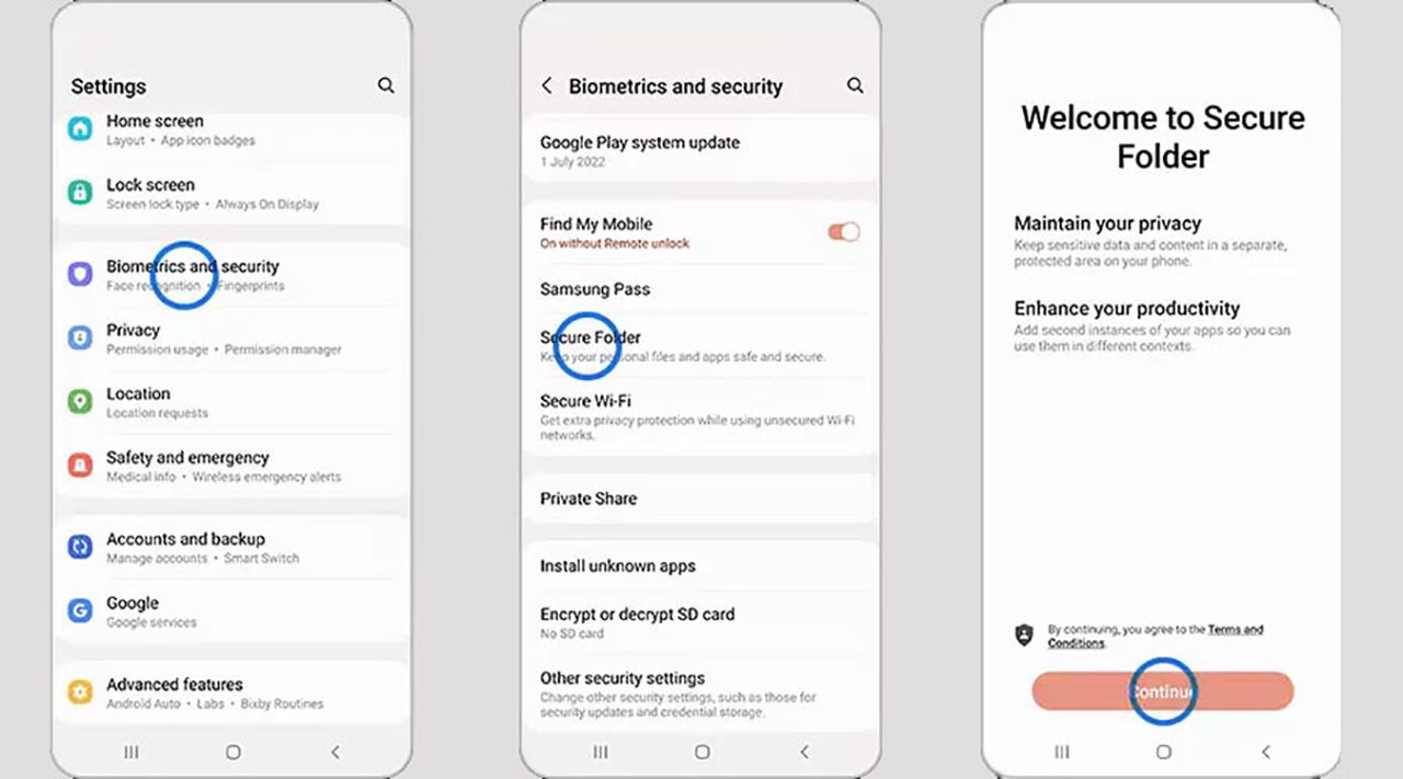 - روی گزینه Secure Folder ضربه بزنید.