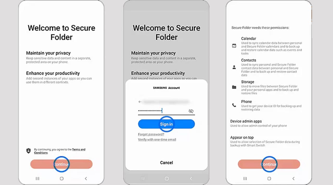 - در این مرحله باید حساب سامسونگ خود را وارد کنید. اگر تابحال این حساب را نساختهاید، به مقاله ساخت اکانت سامسونگ مراجعه کنید.