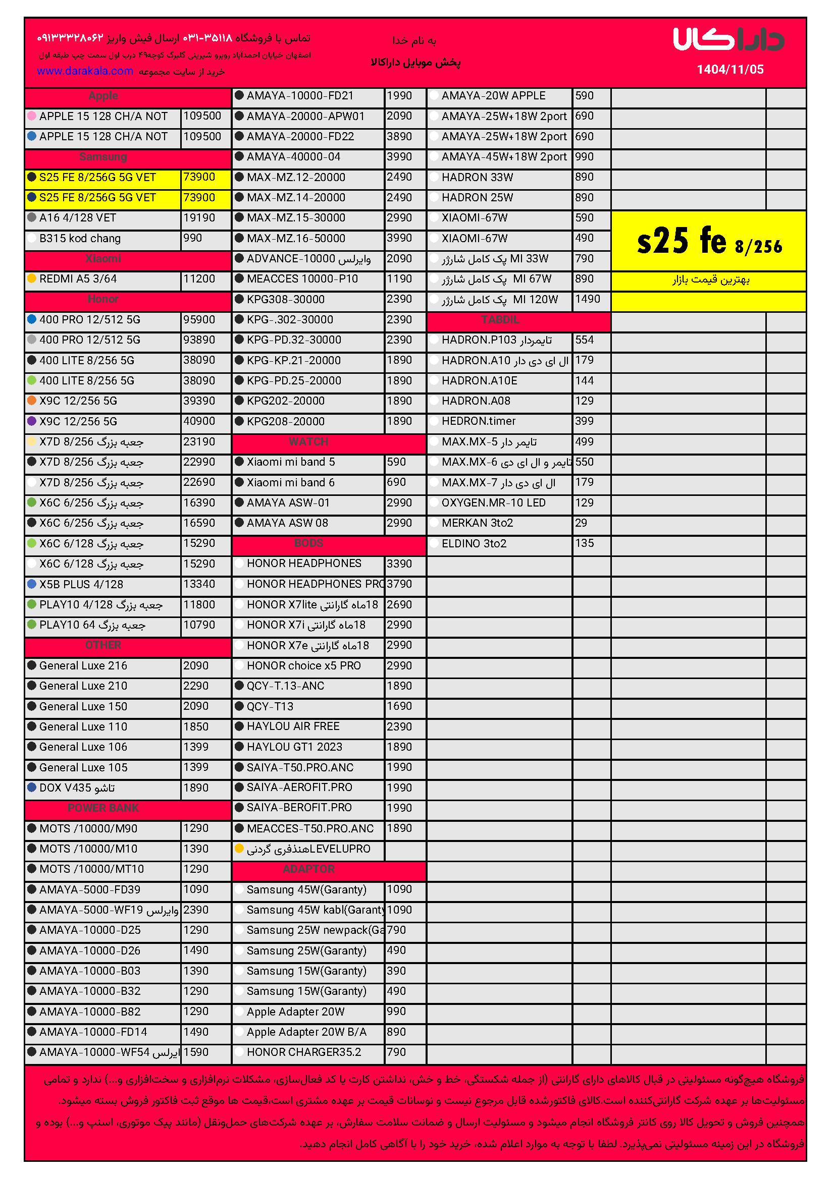 لیست قیمت