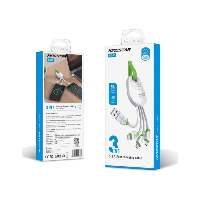 نوع کابل: USB به USB-C/MicroUSB/لایتنینگ